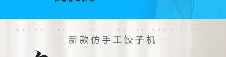 名称JGB-210B仿手工饺子机 电源220/380v 功率1.75kw 产量0-20000个/h 尺寸1760*760*1300mm 重量330kg 规格15-35g/个 其他