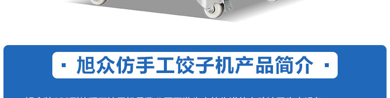 JGB-180饺子机,先进的自动饺子生产设备,包括主动压皮部分、自动供馅部分、自动包合部分、自动成品输送部分,并且只要更换模具,就可制锅贴等食品。适合食品速冻厂、饭店、厂矿学校食堂等制作包馅面制品单位使用。