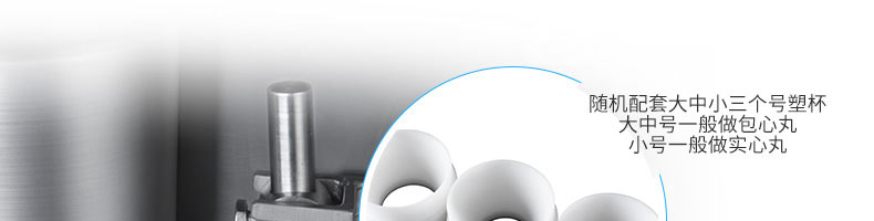 名称XZ-609包馅肉丸机 电源220/380v 功率1.5kw 产量200-300个/min 尺寸730*540*1780mm 重量250kg 规格丸子直径:28-36mm 其他