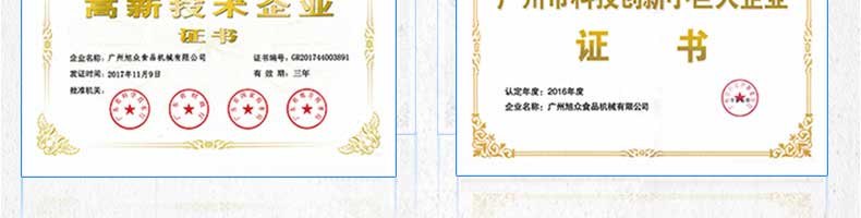 广州旭众食品机械有限公司是一家集科研开发,生产设计,营销服务为一体的现代化生产企业。现代化生产车间,精湛制造技术,所产机械历经市场重重考验,不断赢得海内外客户的赞誉。